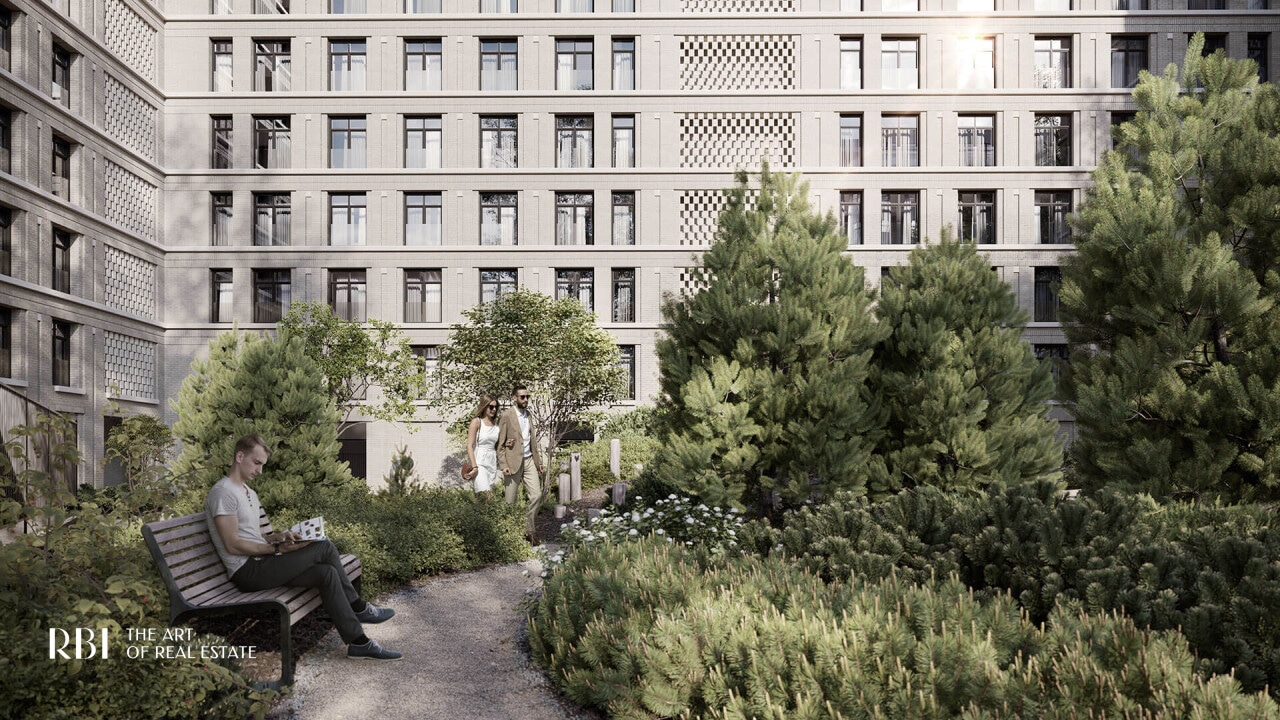 В доме три корпуса — камерный пятиэтажный и два выразительных девятиэтажных. Они объединены приватным двором — тихой вселенной внутри города, охраняемой 24/7. В проекте всего 225 квартир (от 32 до 147 м²), они идеально подходят тем, кто мыслит в категориях свободы и масштаба.